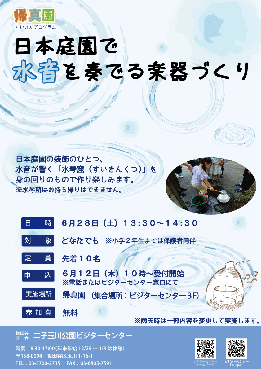 Published 2025年6月10日 at 842 × 1191 in 【受付終了】6/28(土)帰真園体験プログラム「日本庭園で水音を奏でる楽器づくり」.