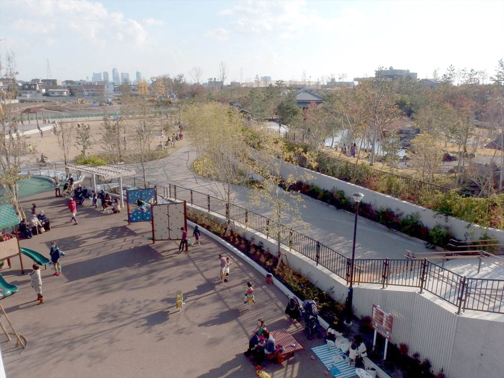 国分寺崖線のみどりと多摩川の水辺に囲まれた場所に位置する眺めの良い公園です