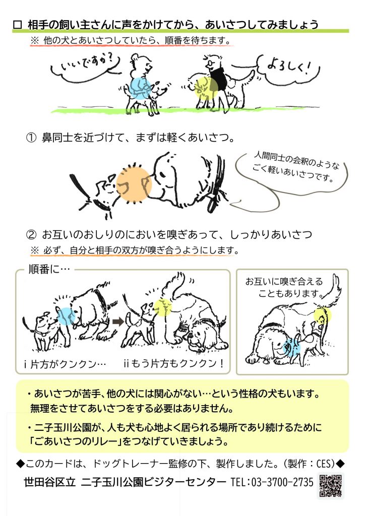 ※ご参加の際は、事前に下の「なかよしカード」でわんこ同士のご挨拶や飼い主さんとのやり取りの仕方をご確認下さい。