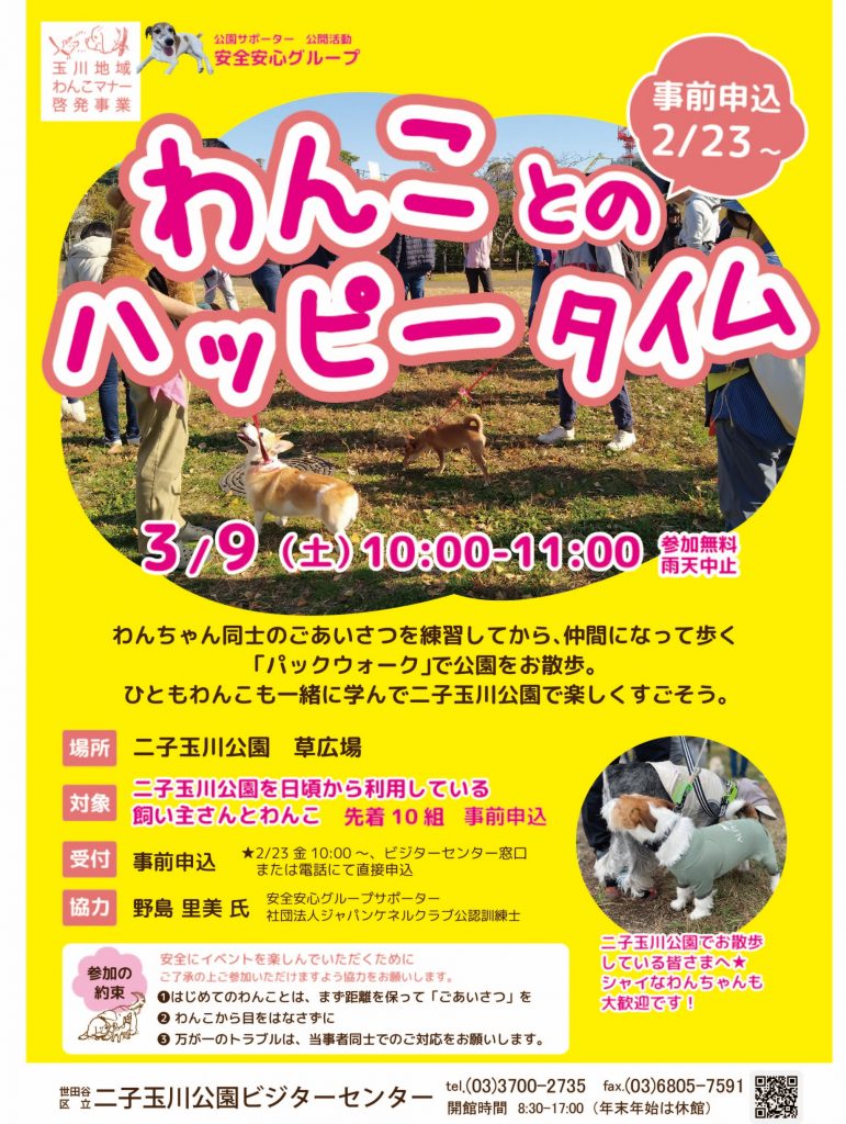 安全安心グループ「二子玉川公園を楽しむ わんことのハッピータイムミニ」は、