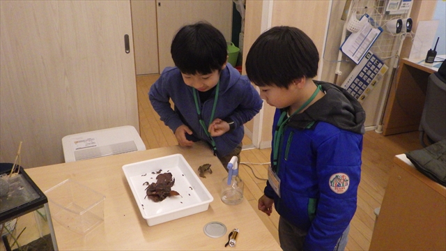ダンゴムシをふれあい休憩室に持ち帰り生き物のお世話をやりましたよ。