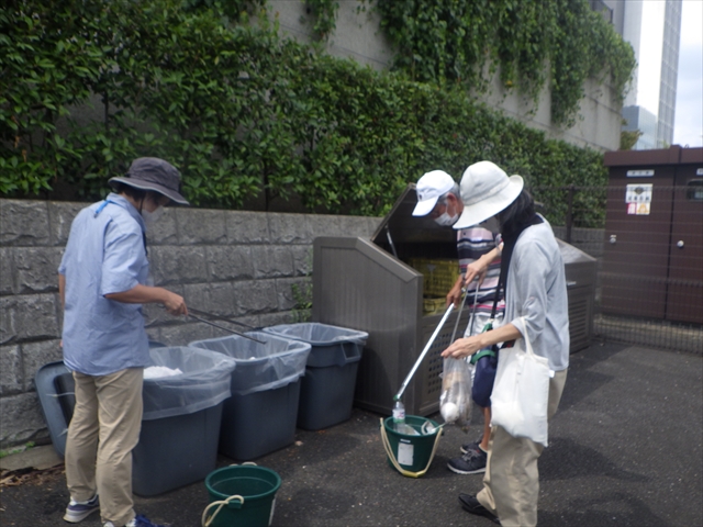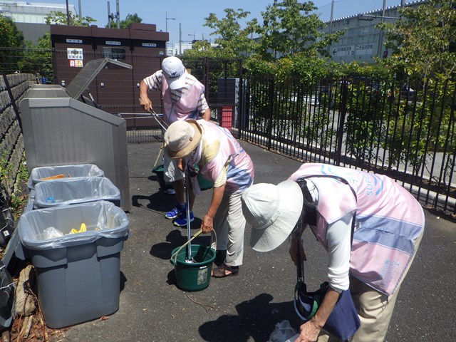 みまわり活動では、花火ゴミ、アルコールの缶、水風船などのゴミが目立ち、回収しました。