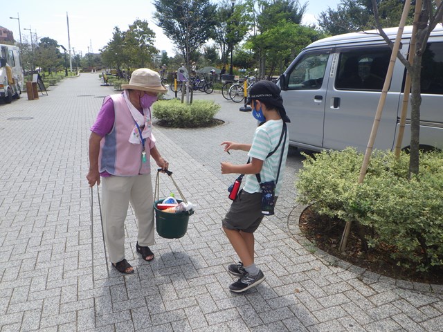 見回り活動では、8月に引き続き花火ごみや飲食物のごみが多く、回収しました。最近ではあまり見られなくなっていた犬の糞も回収しました。