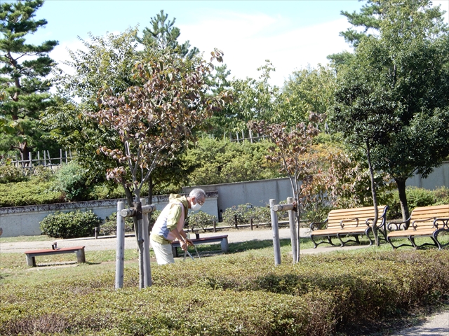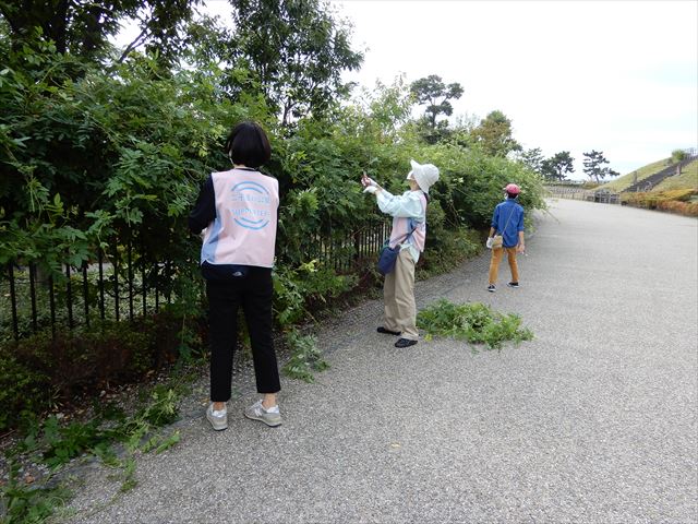 10月は全日程の活動が出来ました。巡回・美化活動のほかに、園路まで出ていたクズの除去やフジの剪定、階段沿いの手すりのボケの剪定も行いました。見た目もすっきりし安全性も高まりました。
