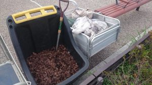 ちび森に行って分布図を見ながらスタッフとも協力して無事21本の樹名板を設置することができました。