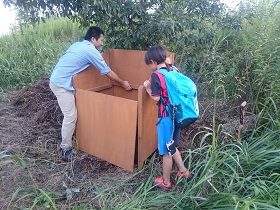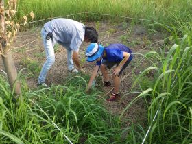 サンクチュアリに入ったついでに、1階で飼育しているアズマヒキガエルのごはんを捕ってきましたよ。