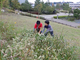 次の日、気持ちよく晴れ公園に樹名板を作ってくれたメンバーが2人が自由活動をしに来てくれました。
