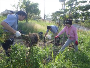 まずはサンクチュアリに植樹する場所を決め、そこに生える野草を根こそぎ抜いていきます。