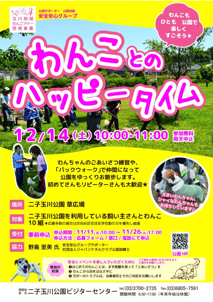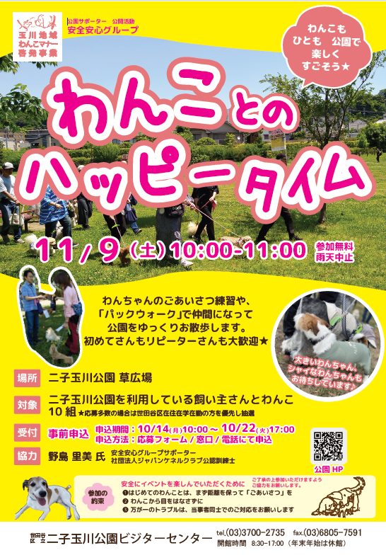 対象 二子玉川公園を日頃から利用している飼い主さんとわんこ 1頭につき大人1名でご参加ください