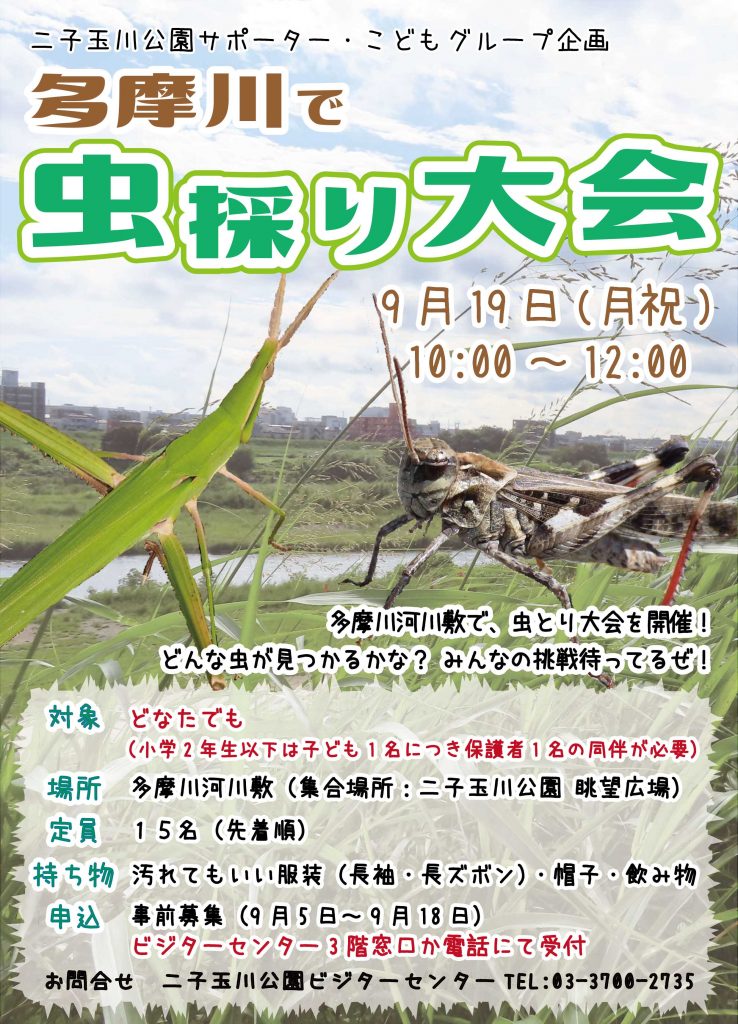 9月19日(月祝)に、こどもグループの公開イベント「多摩川で虫採り大会」を実施します。