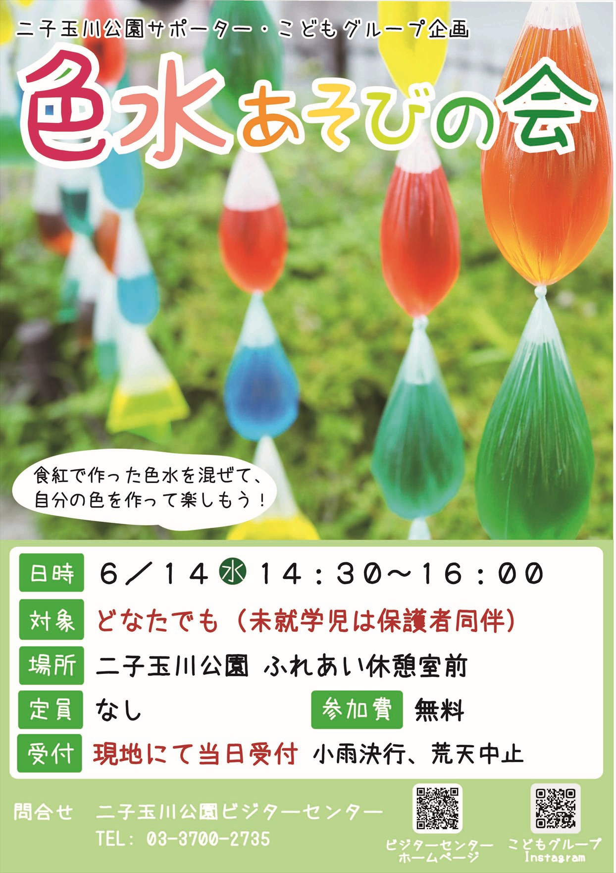 公園サポーター・こどもグループ主催イベント「色水あそびの会」を実施いたします。