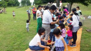 日曜日の実施になるとたくさんのお父さんが来てくれますが、この日も朝から積極的にお手伝いくださる方が来てくれました。とくに火起こしや火の番など担当してくださるお父さんが多く、とても頼もしい限りです。