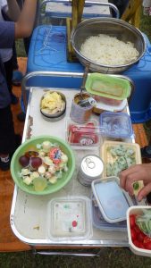 トッピングのゆで卵やトウモロコシ、ピクルスなども用意され皆さん豪華なカレーライスを堪能することができました。
