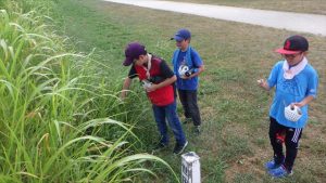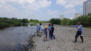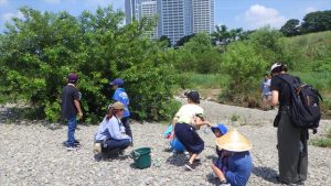 まずは河原の探検からスタート!どんな植物があるのか実際に見ながら、