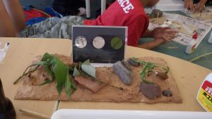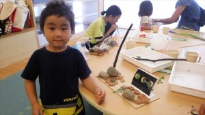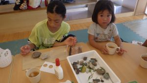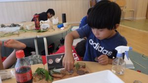 イベント後半は写真立てづくり!粘土や植物などをつかって、見て来たばかりの多摩川の河原を