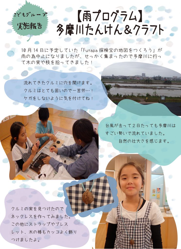10月15日に実施予定のイベント「Futapa探検 宝の地図をつくろう」ですが、雨のため予定を変更して実施しました。