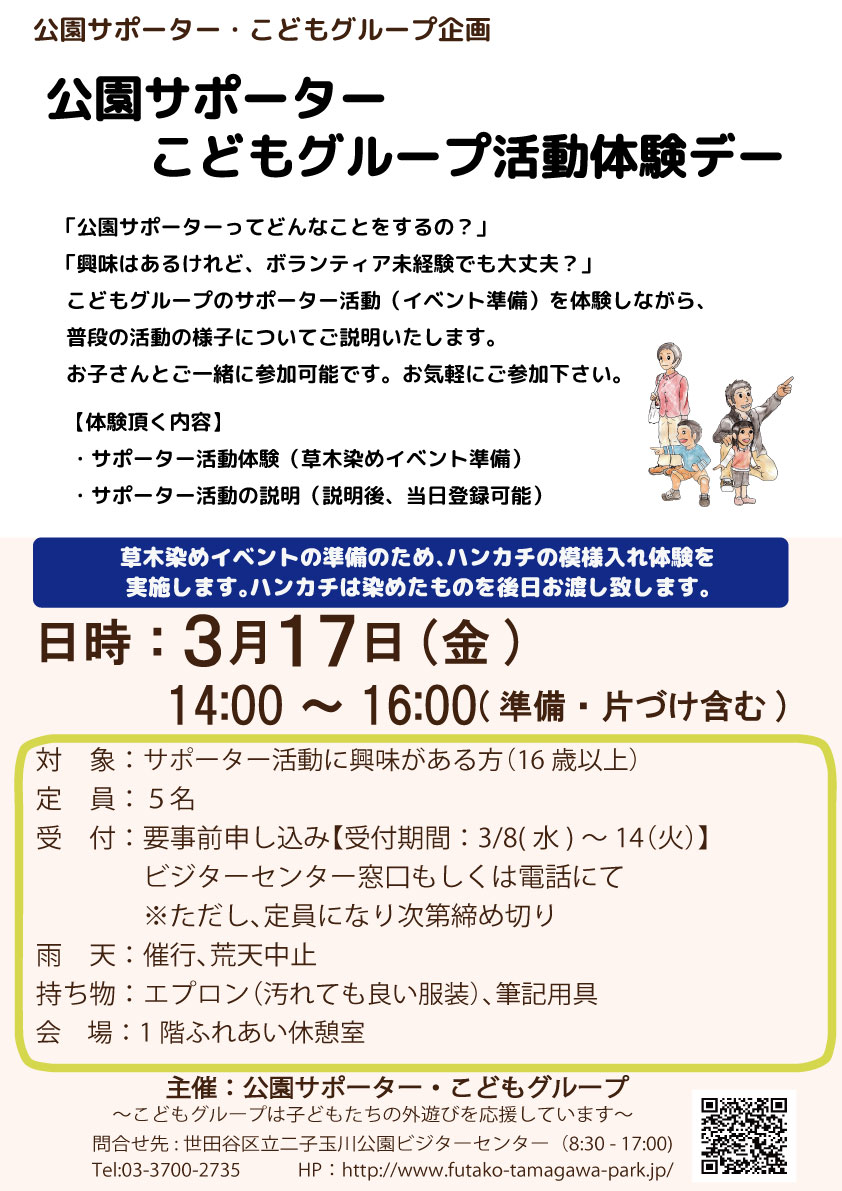 こどもグループのサポーター活動(イベント準備)を体験しながら、普段の活動の様子についてご説明いたします。お子さんとご一緒に参加可能です。お気軽にご参加下さい。
