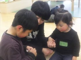 遊びに来てくれた、サポーターのお子さんがベーゴマを教えてくれました。
