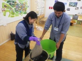 3月17日(金)、こどもグループ初の「サポーター活動体験デー」を実施しました。通常こどもグループではイベント型公開活動のため、サポーターと一般参加者の交流の時間が持ち辛いことから、イベント準備を体験しながら交流して頂く場として設けました。今回は3/25の草木染めの準備で染料液づくりを体験頂きました。