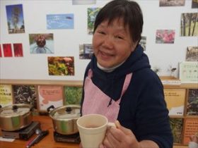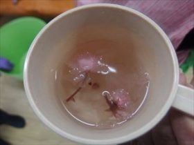 戻った皆さんへ桜湯(桜茶)を提供。桜の香りを味わって頂きました。