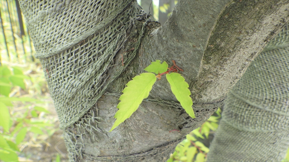 おおきくなあれ Tweet 暦の上では夏がはじまりましたね! 今朝、公園に向かって歩いているとき さわやかな風がここちよく、ああ、夏が来るのだなぁ!と感じました。 そんな春から夏にかけて、多く見られるのが「ひこばえ」。 木の根元や幹から生える若い芽のことです。 青々としてきた木々に生える小さな芽たち。 すこやかに伸びつつある姿は、とてもきれいです。 お散歩しながら探してみてくださいね。 (でこぽん) 写真:日本庭園「帰真園」玉川口のケヤキ