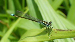 日本庭園内のカキツバタ周辺でよく見かけるイトトンボです。