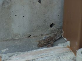 本来は夜行性ですが、園内の樹木や資材置き場で昼間でも時々見かけるのが、ヤモリの仲間の 「二ホンヤモリ」です。