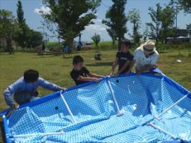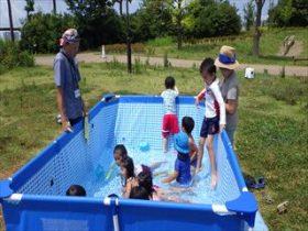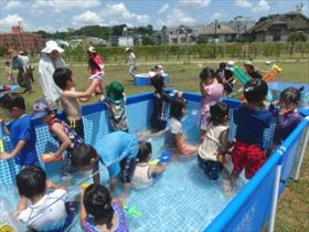 水あそびデビューの小さなお子さんも多く、トロ船や小さなプールも用意しました。