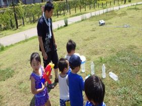 夏休み恒例の水遊び企画「水あそび★2DAYS」。今年は7/20(木)、21(金)の2日間実施しました。この企画はこどもたちに思い切り水遊びを楽しんで欲しい、というサポーターの思いで始まったもので、芝生への散水も兼ね毎年実施しています。2日間とも参加して下さった方もおり、初日90名、2日目120名と約210名の方にご参加頂きました。