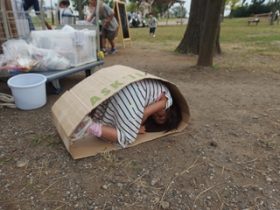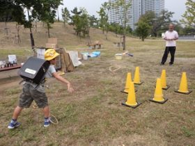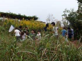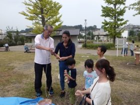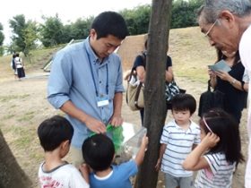 ビジタースタッフと一緒に虫捕り。秋の虫をたくさん見つけることができました。