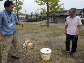 こどもグループサポーターのコマ名人が優しくコマ回しを教えてくれました。