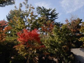 紅葉の進んだ、イロハモミジに青空のコントラストが見事でした。