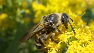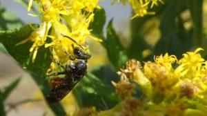 ちょっと大きめのハチ。土に潜り、コガネムシの幼虫に卵を産み付ける。