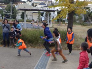 落ち葉やどんぐり集め、リレー、ベーゴマなどいろいろな遊びが出来ましたよ。