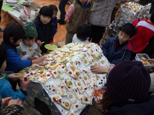 次に一生懸命作ったケーキをみんなでデコレーションして・・・