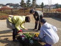 子ども花壇の手入れ、いのちの森樹名板設置などを行います。