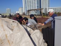 サポーター同士で花がら摘みの方法を教えあうなど、協力して活動を行っています。
