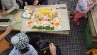 お腹がいっぱいになった後は、スタッフと一緒に巻き寿司遊びを楽しみ・・・