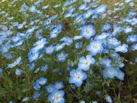 ネモフィラのお花畑が広がり、目線を合わせるとまるで海のよう。