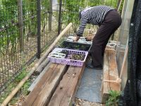 3月にまいた種から育った苗の手入れをしたり、