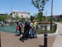 水やりをするときには、近くで遊んでいる親子に手伝ってもらいました。