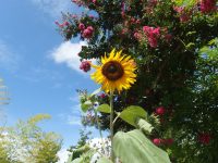 こども花壇で大きなヒマワリを見たり、お気に入りの花を探したり、