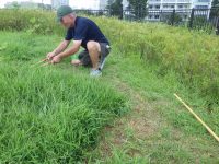 芝刈り機で短く切りそろえるという流れで作業をしました。