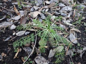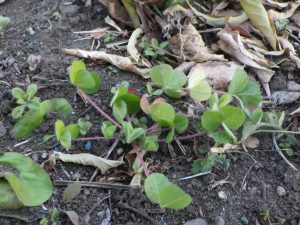 秋に降り積もった落ち葉がお布団のように暖めてくれています。