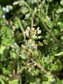 こちらの小さく白い花を咲かせるのはナズナ。ペンペングサとも言います。