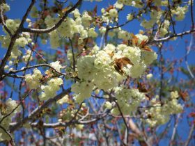私のオススメは 黄色と緑のサクラ「ウコンザクラ」(左下)と「ギョイコウ」(右下)です。