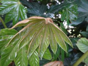 ヤツデというと毛がなくてツルツルの葉っぱのイメージでしたが、新葉にこんなに毛が生えているとは驚きです。