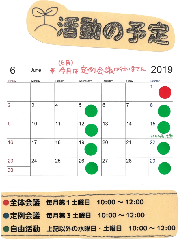 ※6月は定例会議は行いません。いのちの森で自由活動を行います。