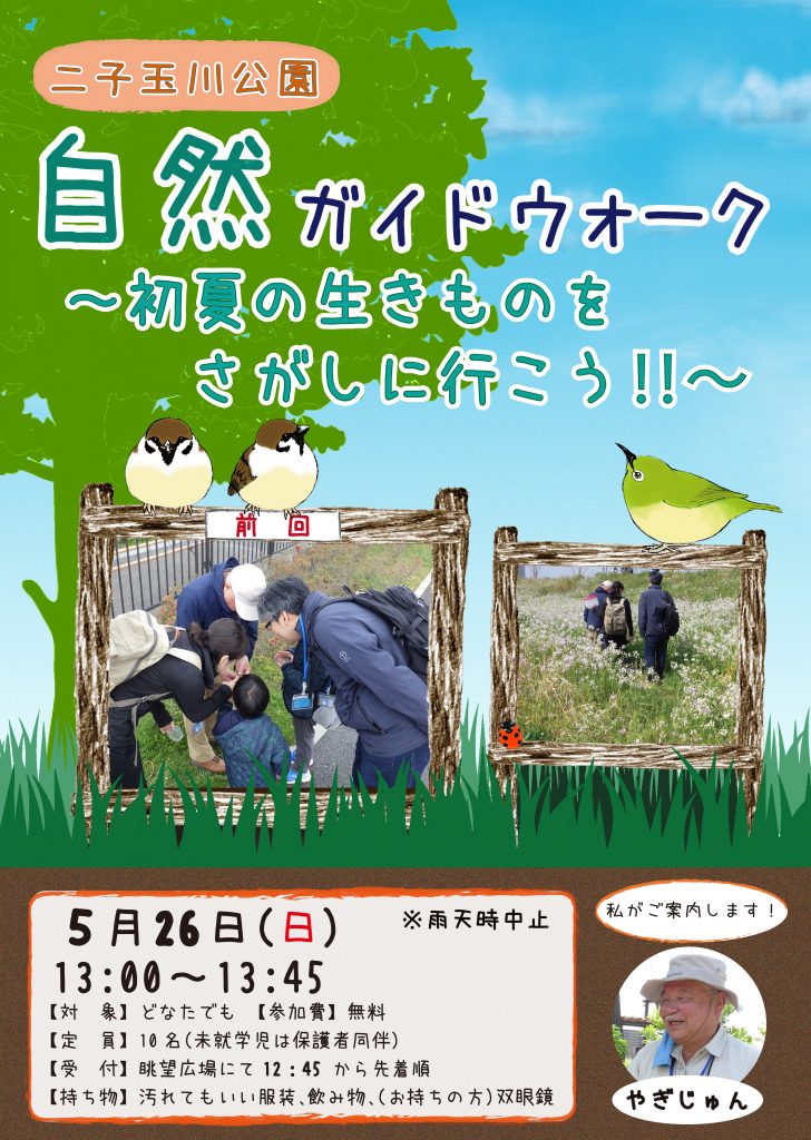 5月ももう下旬、早めの初夏の猛暑となっている現在。昆虫や草花などの新しい命が誕生したりと力強い生き物たちが活動を繰り広げております。そんな生物たちを一緒に探しに行きませんか?どんな生きものが見つけられるかは当日までのおたのしみ。