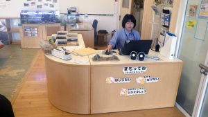 中に入るとまず公園スタッフのお姉さん、お兄さんがいますよ!利用方法、公園や周辺の自然について気になることは気軽に質問してくださいね。